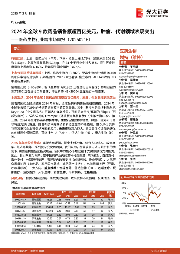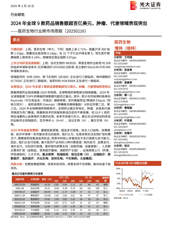 【光大证券】【20250218】2024年全球9款药品销售额超百亿美元,肿瘤、代谢领域表现突出-16页
