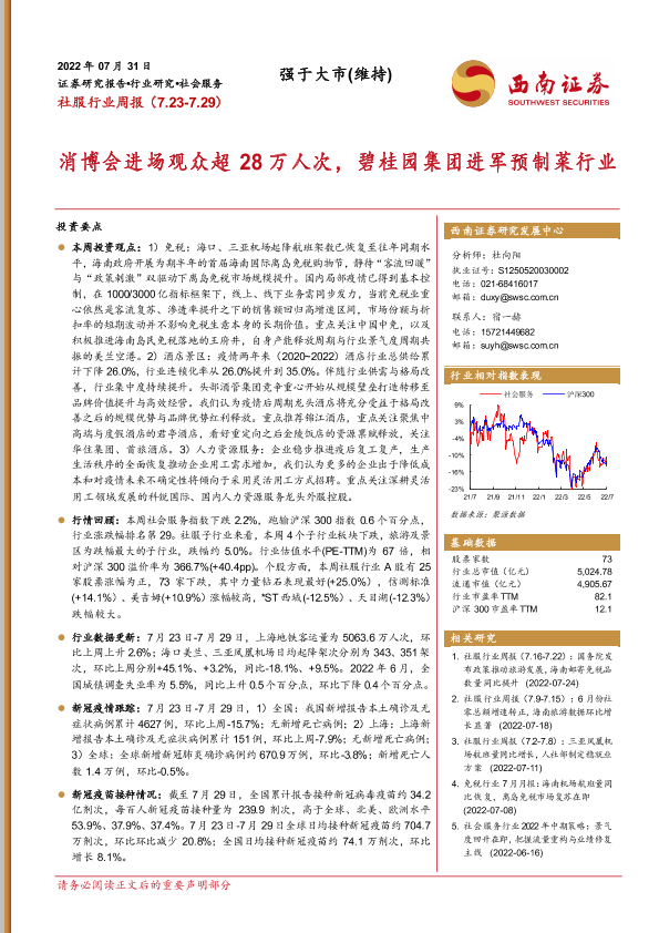 【西南证券】【20220731】社服行业周报:消博会进场观众超28万人次,碧桂园集团进军预制菜行业-22页