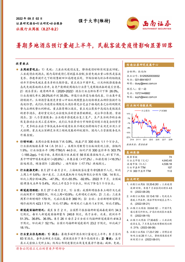 【西南证券】【20220902】社服行业周报:暑期多地酒店预订量超上半年,民航客流受疫情影响显著回落-21页
