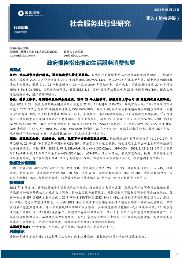 【国金证券】【20230305】推动生活服务消费恢复-15页