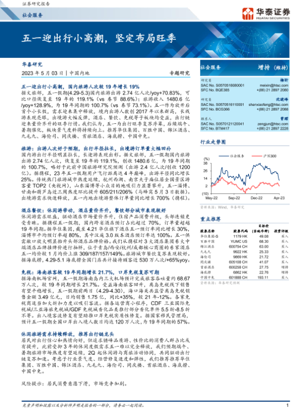 【华泰证券】【20230503】五一迎出行小高潮,坚定布局旺季-10页