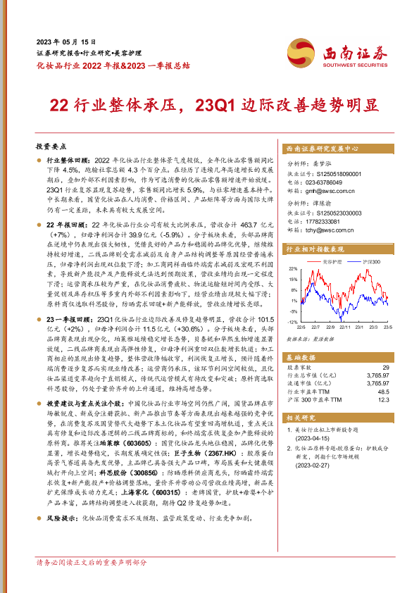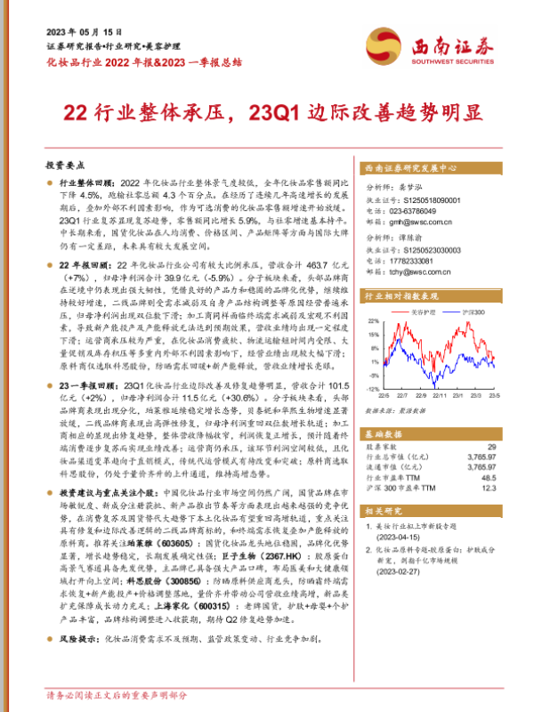 【西南证券】【20230515】化妆品行业2022年报&2023一季报总结-12页