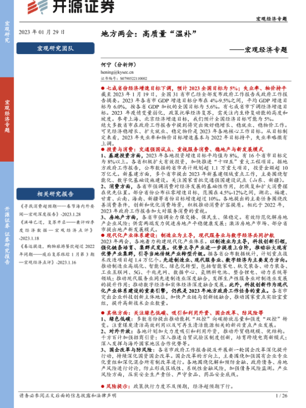 【开源证券】【20230129】宏观经济专题:地方两会,高质量“温补”-26页