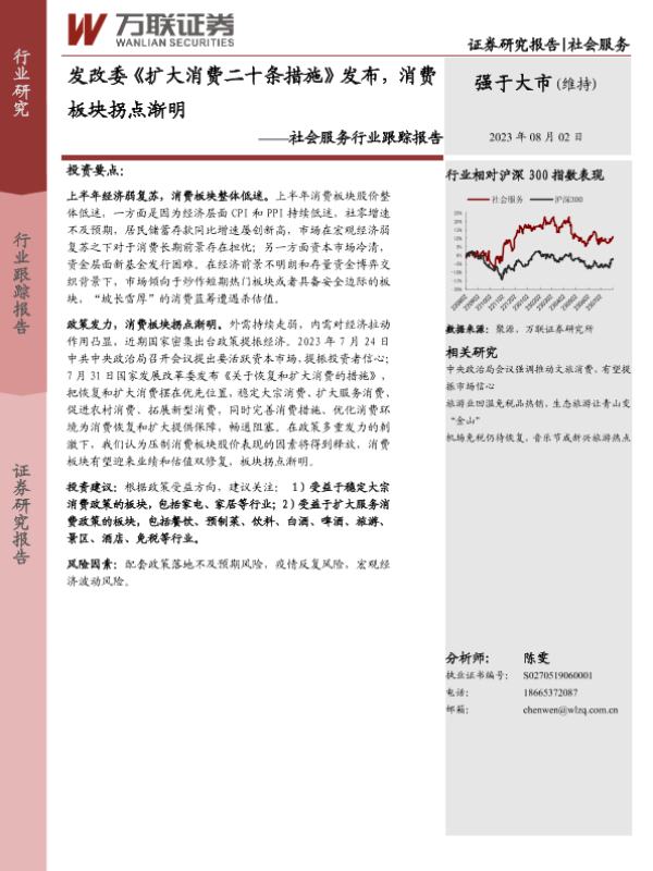 【万联证券】【20230802】发改委《扩大消费二十条措施》发布,消费板块拐点渐明-11页