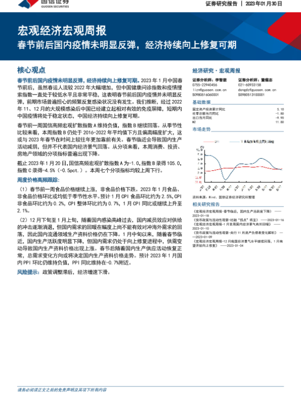 【国信证券】【20230130】宏观经济宏观周报:春节前后国内疫情未明显反弹,经济持续向上修复可期-17页