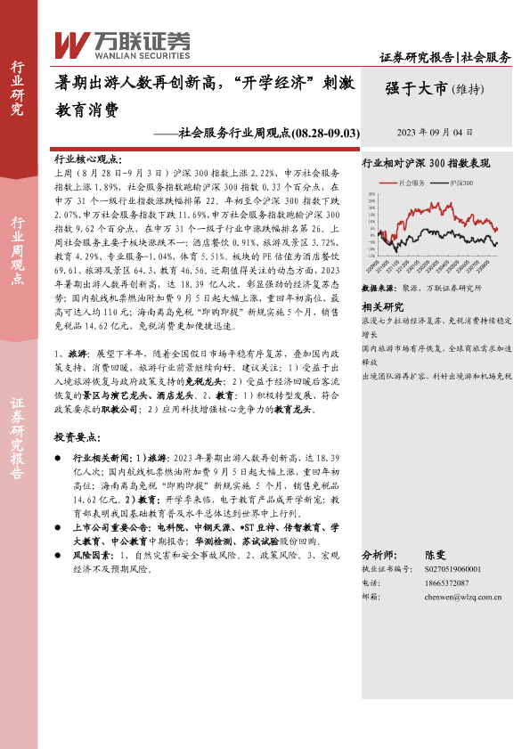 【万联证券】【20230904】社会服务行业周观点:暑期出游人数再创新高,“开学经济”刺激教育消费-10页