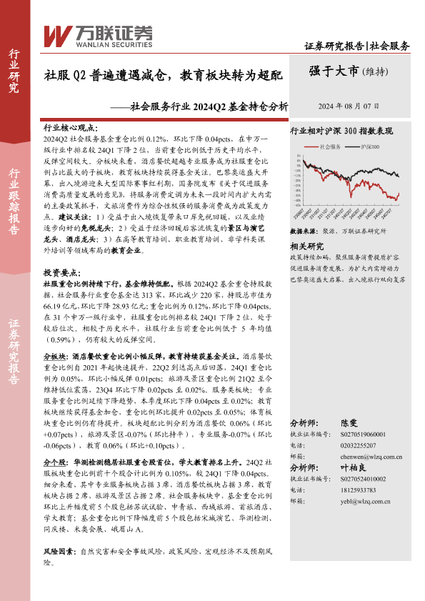 【万联证券】【20240807】社服Q2普遍遭遇减仓,教育板块转为超配-10页