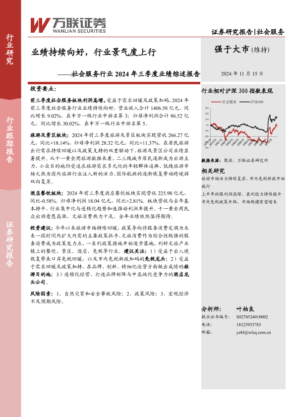 【万联证券】【20241115】社会服务行业2024年三季度业绩综述报告:业绩持续向好,行业景气度上行-10页