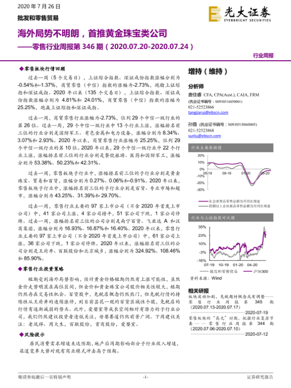 【光大证券】【20200726】海外局势不明朗,首推黄金珠宝类公司-11页