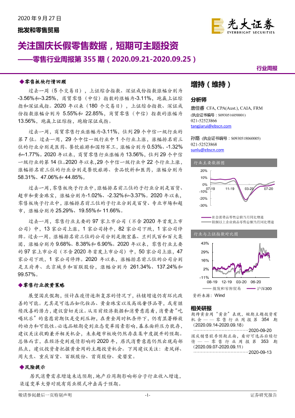 【光大证券】【20200927】零售行业周报第355期:关注国庆长假零售数据,短期可主题投资-10页