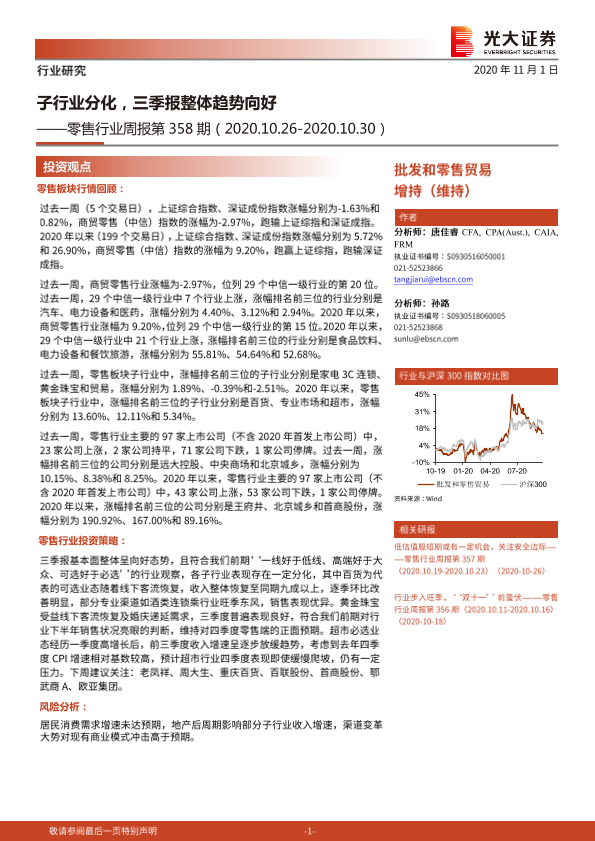 【光大证券】【20201101】零售行业周报第358期:子行业分化,三季报整体趋势向好-10页