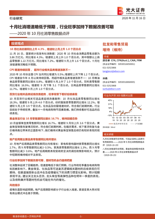 【光大证券】【20201116】十月社消增速略低于预期,行业旺季加持下数据改善可期-6页