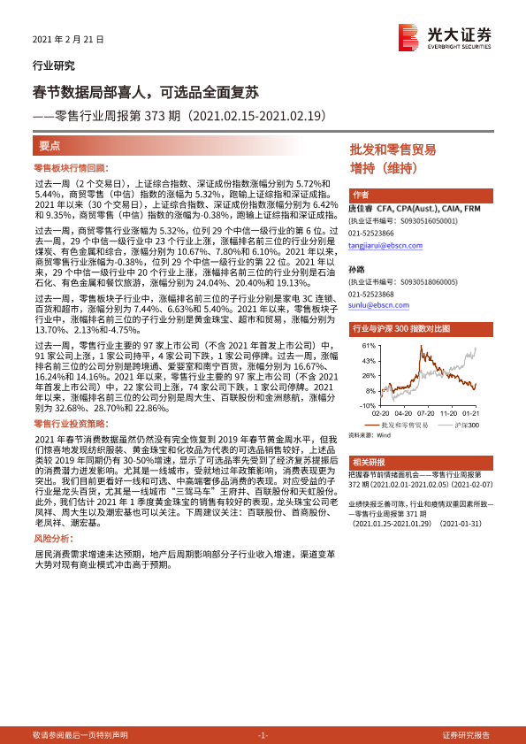 【光大证券】【20210221】零售行业周报第373期:春节数据局部喜人,可选品全面复苏-9页