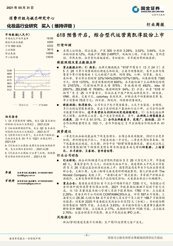 618预售 化妆品行业 电商运营 新股上市 市场分析