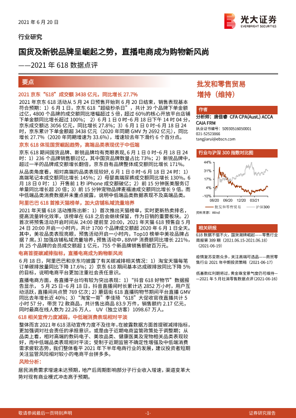【光大证券】【20210620】2021年618数据点评:国货及新锐品牌呈崛起之势,直播电商成为购物新风尚-3页