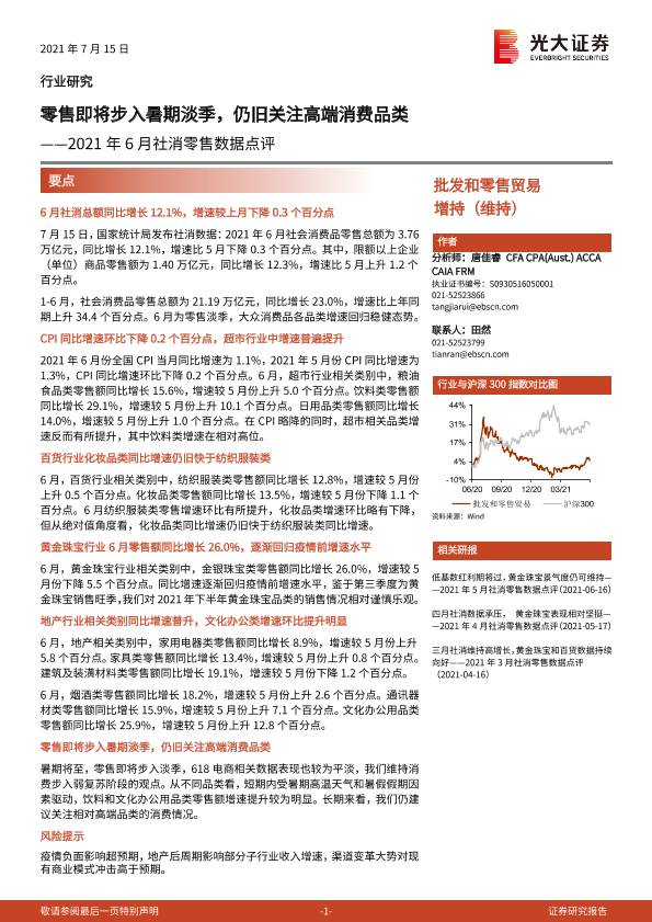 【光大证券】【20210715】零售即将步入暑期淡季,仍旧关注高端消费品类-6页