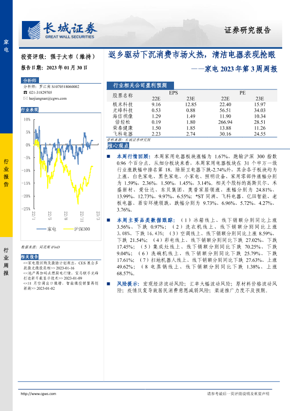 【长城证券】【20230130】家电2023年第3周周报:返乡驱动下沉消费市场火热,清洁电器表现抢眼-30页