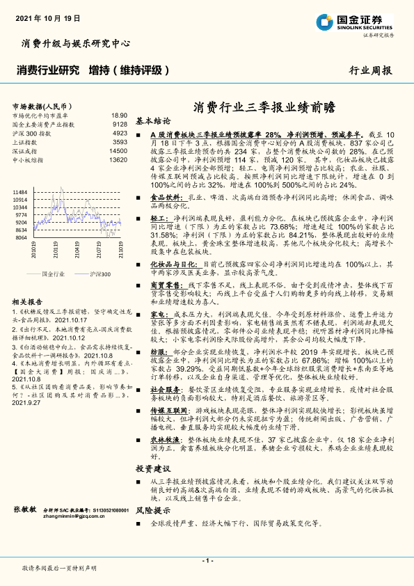 【国金证券】【20211019】消费行业周报:消费行业三季报业绩前瞻-14页