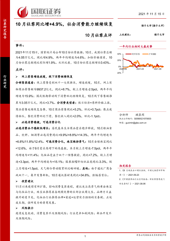 【国联证券】【20211115】10月社零同比增+4.9%,社会消费能力继续恢复-2页