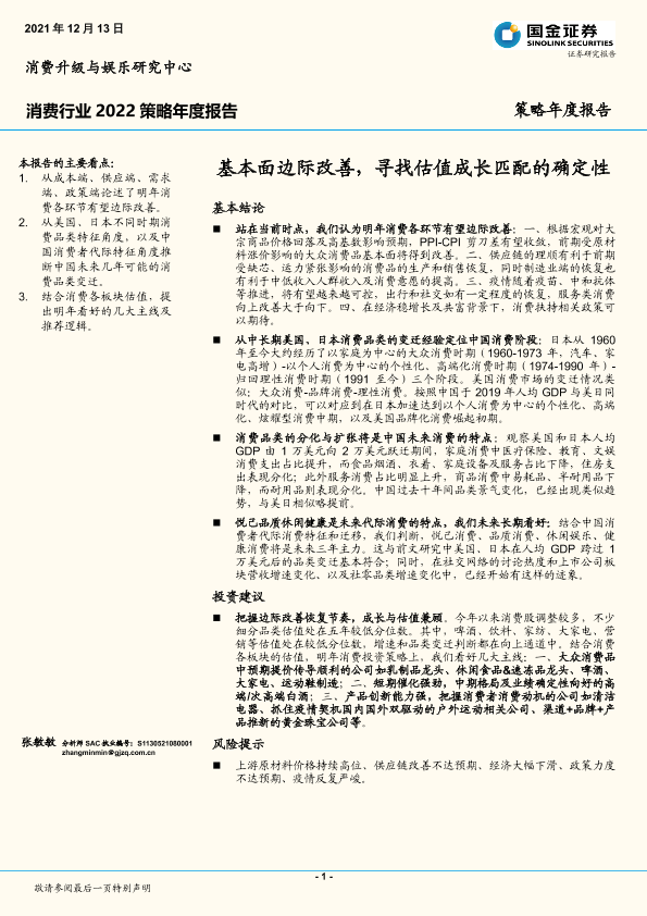 【国金证券】【20211213】消费行业2022策略年度报告:基本面边际改善,寻找估值成长匹配的确定性-22页