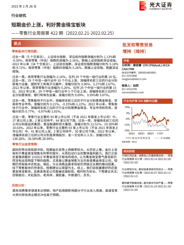 【光大证券】【20220226】零售行业周报第422期:短期金价上涨,利好黄金珠宝板块-8页