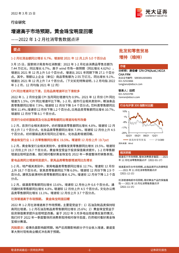 【光大证券】【20220315】2022年1-2月社消零售数据点评:增速高于市场预期,黄金珠宝明显回暖-6页