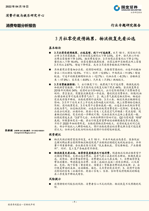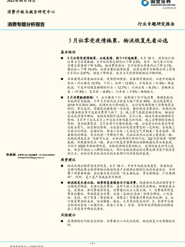 【国金证券】【20220419】3月社零受疫情拖累,物流恢复先看必选-12页