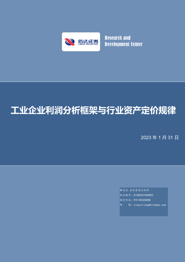 【信达证券】【20230131】工业企业利润分析框架与行业资产定价规律-29页