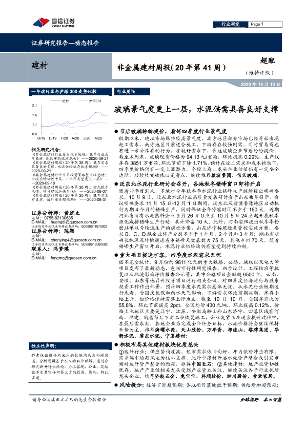 【国信证券】【20201012】非金属建材周报:玻璃景气度更上一层,水泥供需具备良好支撑-16页