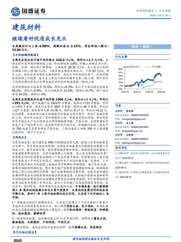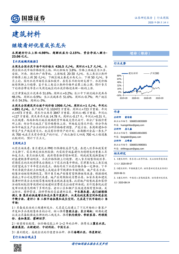 【国盛证券】【20200914】建筑材料行业周报:继续看好优质成长龙头-25页
