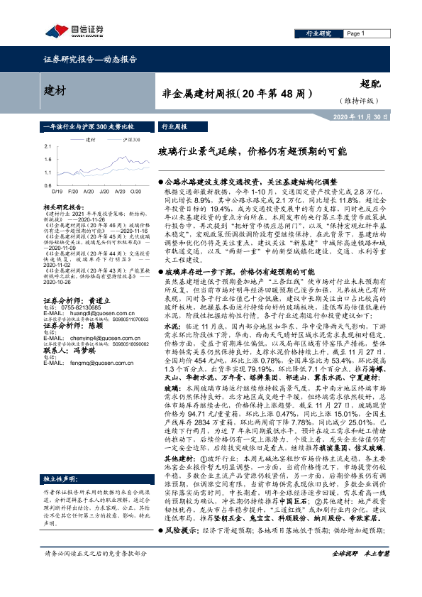 【国信证券】【20201130】非金属建材周报:玻璃行业景气延续,价格仍有超预期的可能-14页