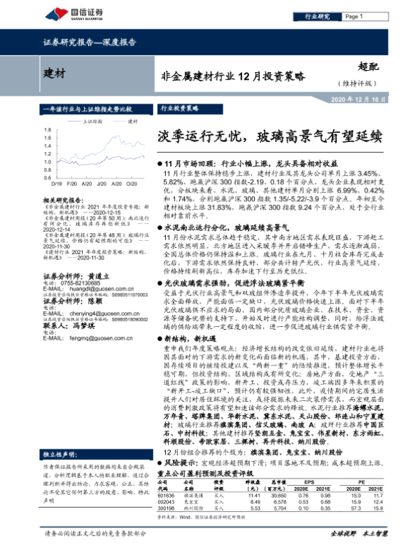 【国信证券】【20201216】非金属建材行业12月投资策略:淡季运行无忧,玻璃高景气有望延续-25页
