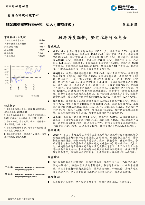 【国金证券】【20210207】非金属类建材行业研究:玻纤再度涨价,坚定推荐行业龙头-7页