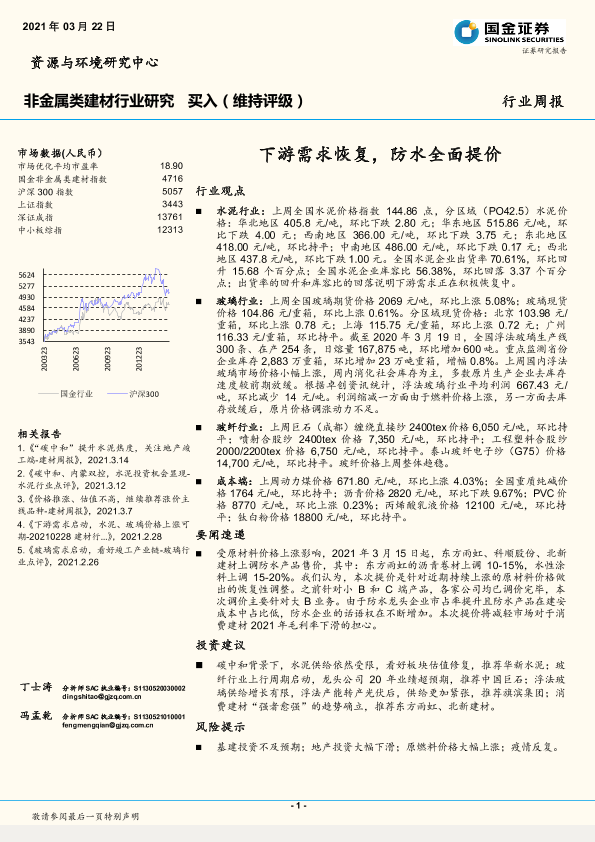 【国金证券】【20210322】非金属类建材行业周报:下游需求恢复,防水全面提价-8页