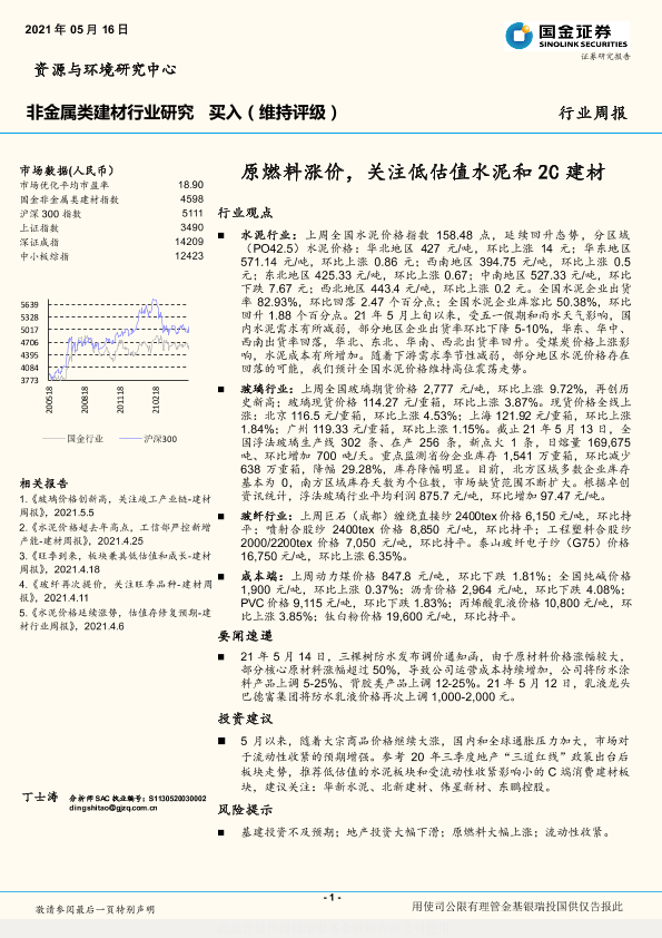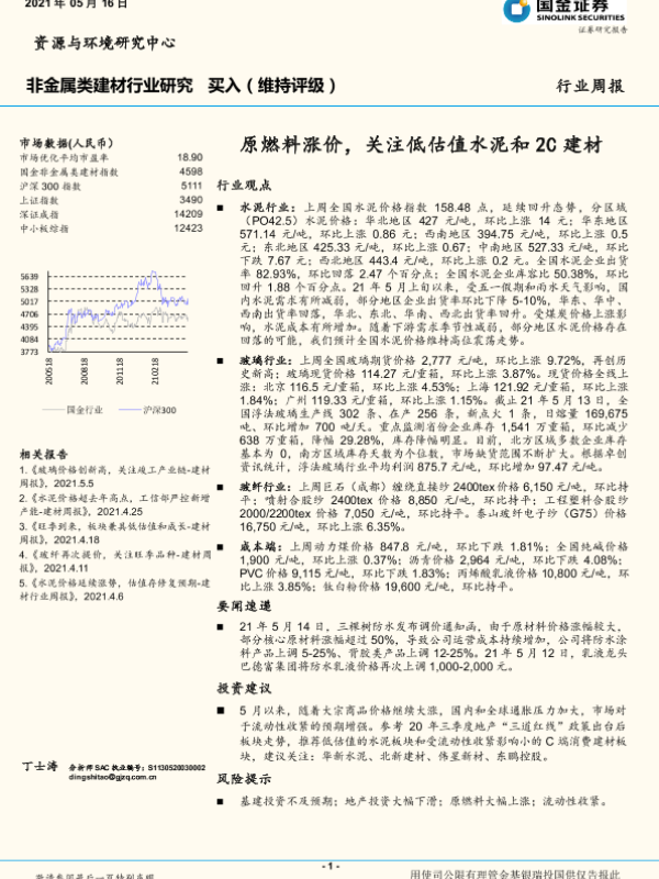 【国金证券】【20210516】非金属类建材行业研究:原燃料涨价,关注低估值水泥和2C建材-8页