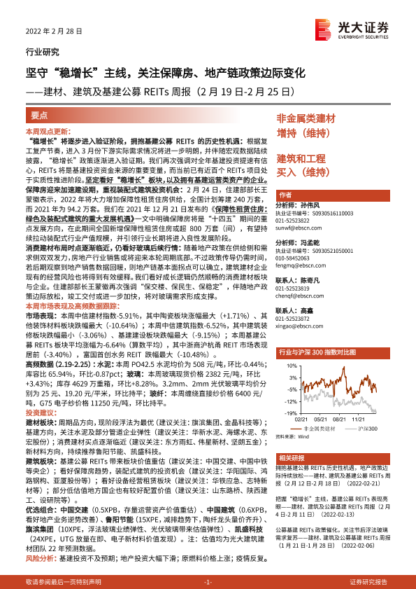 【光大证券】【20220228】建材、建筑及基建公募REITs周报:坚守“稳增长”主线,关注保障房、地产链政策边际变化-16页