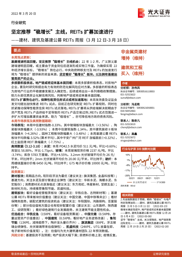 【光大证券】【20220320】建材、建筑及基建公募REITs周报:坚定推荐“稳增长”主线,REITs扩募加速进行-15页