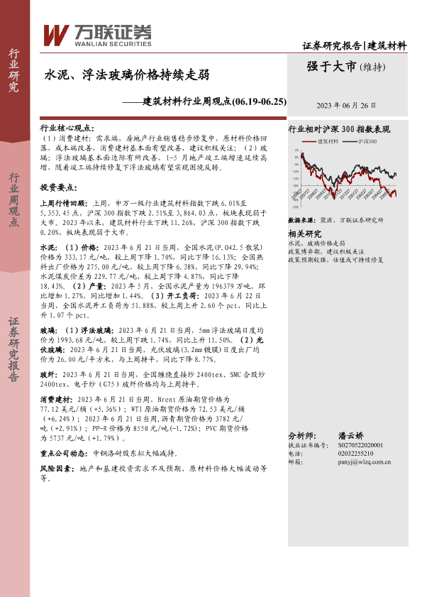 【万联证券】【20230626】水泥、浮法玻璃价格持续走弱-18页