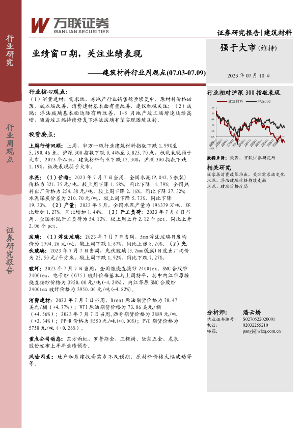 【万联证券】【20230710】建筑材料行业周观点:业绩窗口期,关注业绩表现-19页