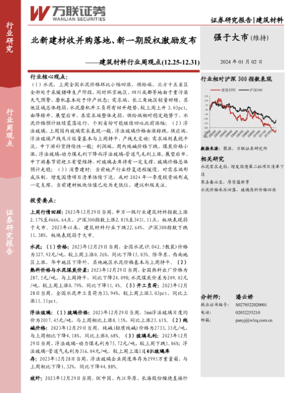 玻璃 建筑材料 股权激励 水泥 市场分析