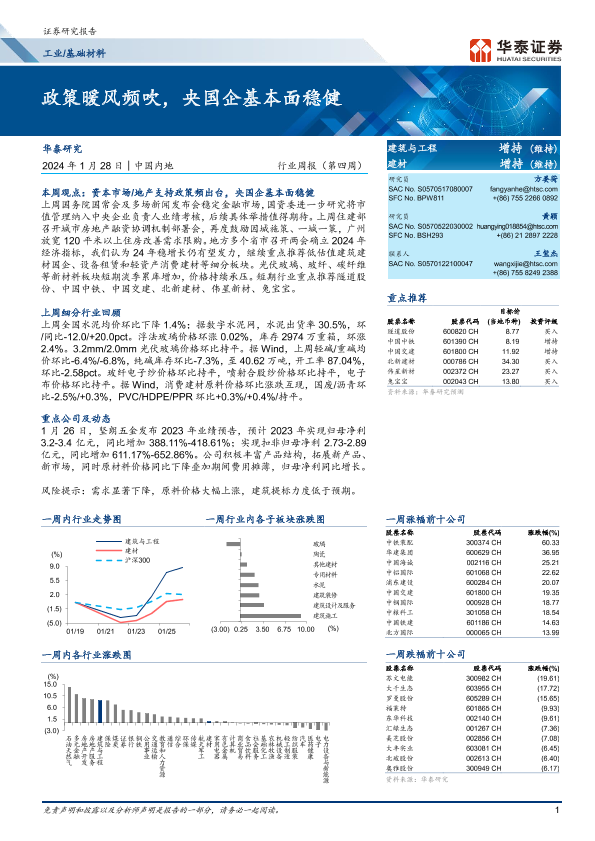 【华泰证券】【20240128】工业基础材料行业周报(第四周):政策暖风频吹,央国企基本面稳健-14页