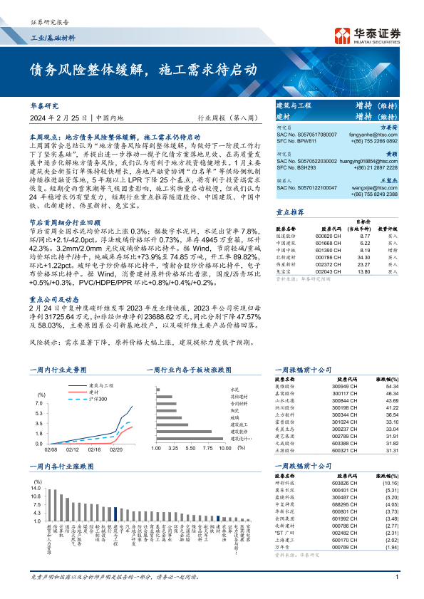 【华泰证券】【20240225】工业基础材料行业周报:债务风险整体缓解,施工需求待启动-13页