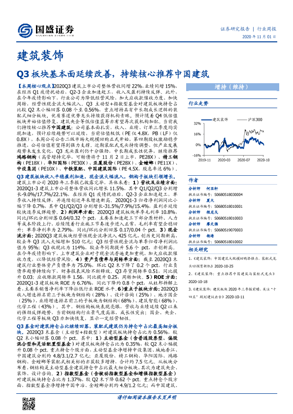 【国盛证券】【20201101】建筑装饰:Q3板块基本面延续改善,持续核心推荐中国建筑-17页