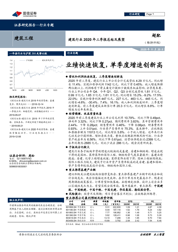 【国信证券】【20201120】建筑行业2020年三季报总结及展望:业绩快速恢复,单季度增速创新高-28页