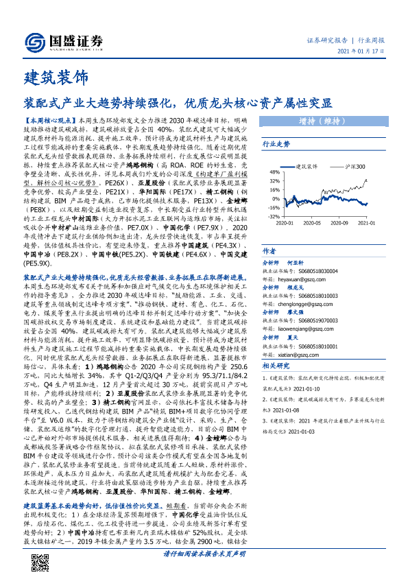 【国盛证券】【20210117】建筑装饰行业周报:装配式产业大趋势持续强化,优质龙头核心资产属性突显-18页