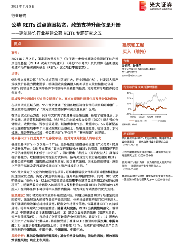 【光大证券】【20210705】建筑装饰行业基建公募REITs专题研究之五:公募REITs试点范围拓宽,政策支持升级仅是开始-5页