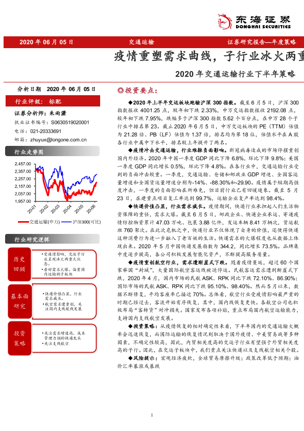 【东海证券】【20200605】2020年交通运输行业下半年策略:疫情重塑需求曲线,子行业冰火两重天-27页