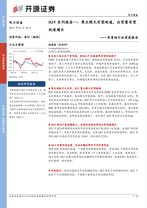 【开源证券】【20230130】异质结行业深度报告:HJT系列报告一:商业模式有望跑通,出货量有望快速增长-19页