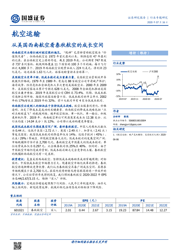 【国盛证券】【20200716】从美国西南航空看春秋航空的成长空间-40页