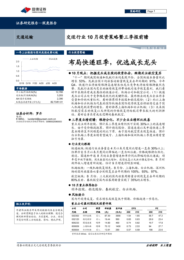 【国信证券】【20201014】交运行业10月投资策略暨三季报前瞻:布局快递旺季,优选成长龙头-22页